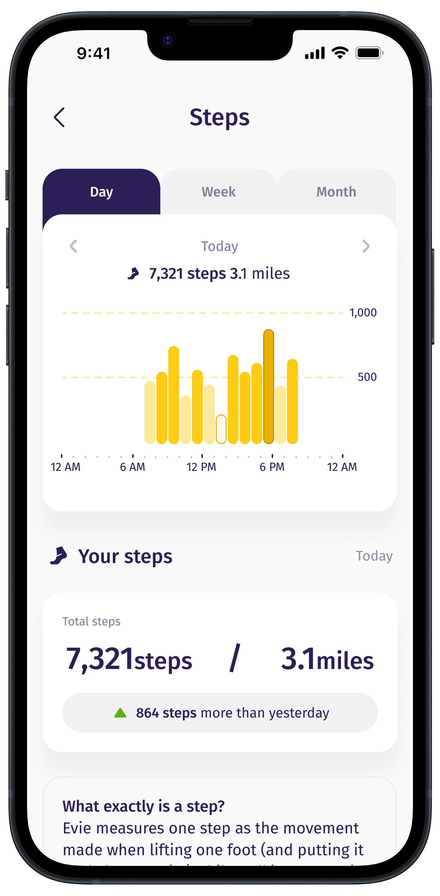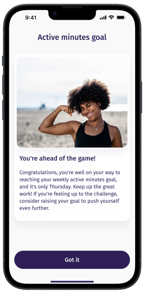 With Evie, you can set goals for the specific metrics that matter most to you, whether that’s sleep cycles, activity, steps, or mindfulness.