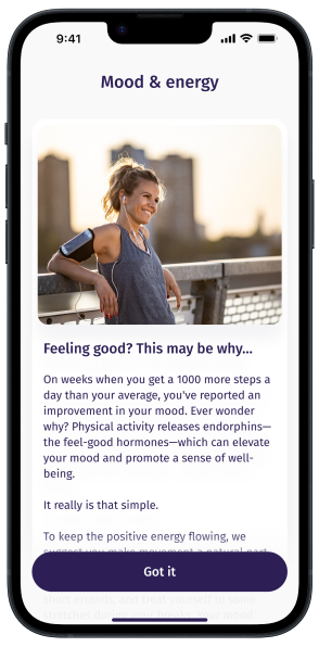 Find better balance with Evie’s Daily Summary, a personalized overview of your health.