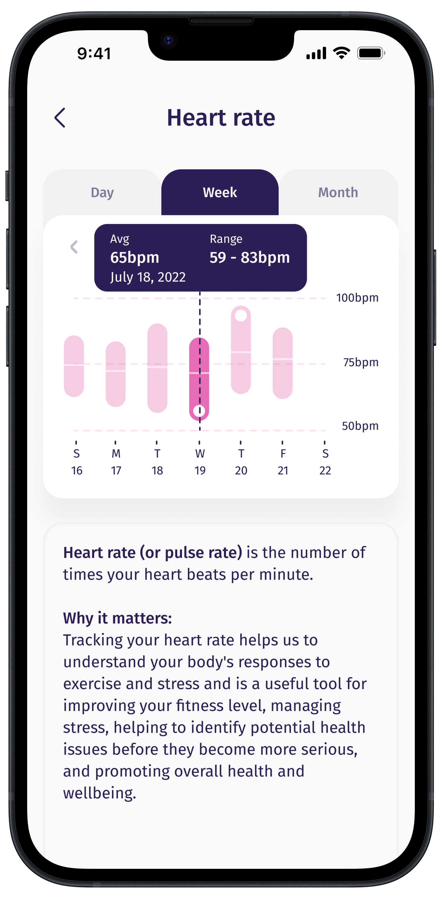 - Keep track of your progress by measuring daily steps against your goals or age.